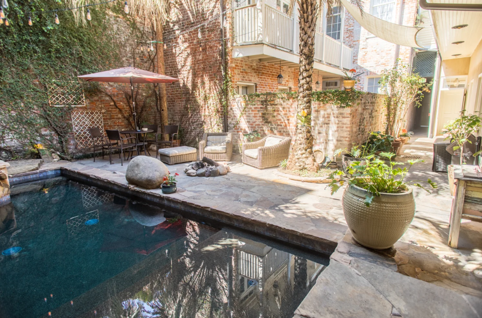 Ground level furnished French Quarter apartment that opens to courtyard with pool and communal use cabana. Apartment includes pool access.